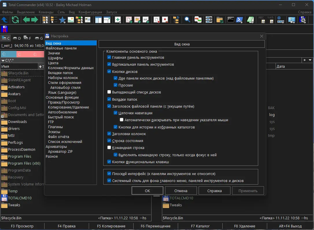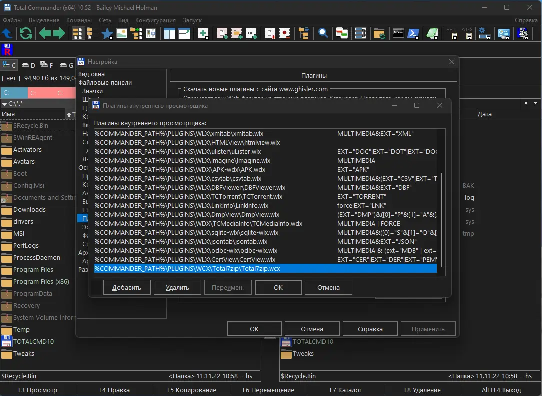 - Поддержка широкого набора плагинов для просмотра, архивирования, работы с файлами и содержимым.