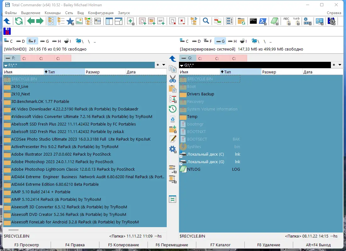 Портативная сборка Total Commander — мощный менеджер файлов, ориентированный на расширенные возможности работы с файлами и папками. Программа полностью собирается без стороннего ПО, расширена плагинами и скриптами, обеспечивает удобство и эффективность в работе на различных системах Windows 7, 8/8.1, 10 и 11 как в x32, так и в x64 Bit. В версии 10 появилась интеграция мультимедийного плеера с полным набором фильтров и кодеков, что позволяет просматривать и воспроизводить медиа прямо внутри файлового менеджера.