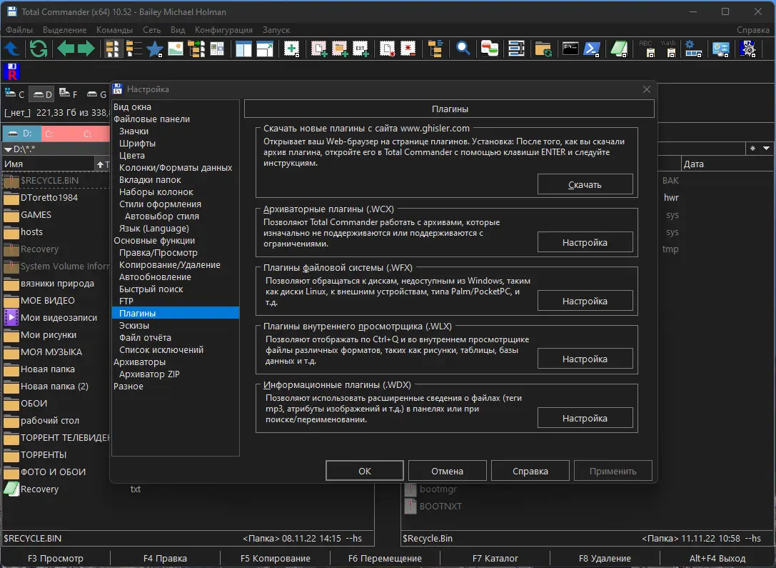 - Поддержка множества плагинов для просмотра, архивации, работы с содержимым и системой файлов.