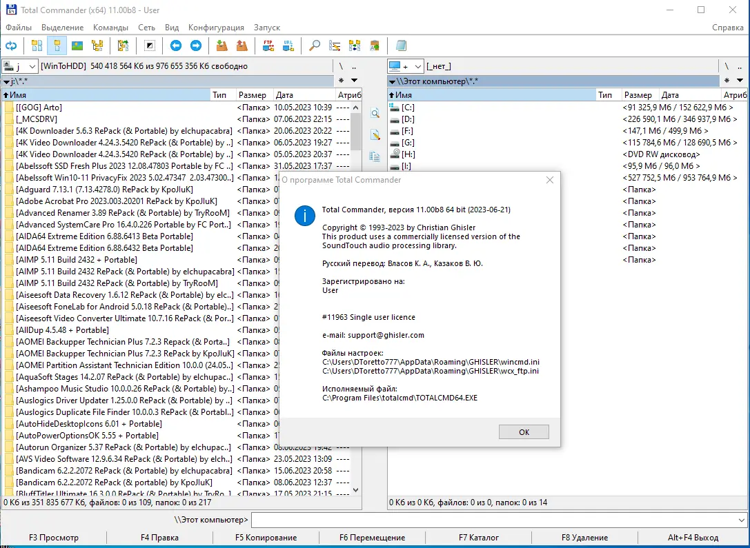 Total Commander представляет собой двухпанельный файловый менеджер, который продолжает добрую традицию подобной утилиты, но отличается повышенной удобностью и расширенной функциональностью. В программе реализованы функциональные просмотрщики для мультимедиа и графических файлов, распаковщики архивов, а также клиент для скачивания и закачивания файлов в несколько потоков. Поддержка плагинов и встроенных инструментов позволяет адаптировать работу под любые задачи, обеспечивая быстрое и безопасное управление файлами в системах Windows 7, 8/8.1, 10 и 11 на архитектуре x32 и x64 Bit.