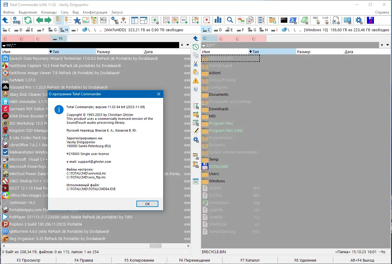 Портативная сборка Total Commander 11.02 для Windows 7, 8/8.1, 10, 11. Включает расширенные функции, плагины и не содержит стороннего ПО за исключением утилит для поддержки скриптов. Доступна для скачивания бесплатно, подойдет для x32 и x64 Bit систем.