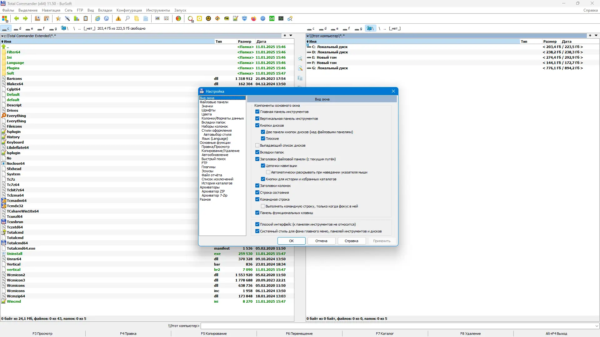 - Интеграция множества плагинов для работы с мультимедиа, архивами, облачными хранилищами и системными утилитами.