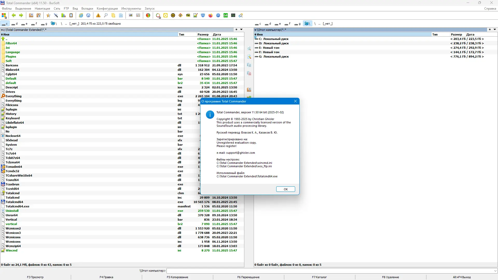 Total Commander — это один из самых известных файловых менеджеров под Windows. В Extended версии он предлагает свежий взгляд на функциональность и стабильность работы. Программа поддерживает работу как на 32-битных, так и на 64-битных системах, включает оптимальный набор программ и плагинов, а также позволяет легко интегрировать дополнительные программы. Одной из ключевых особенностей является портативность: его можно установить на любой съемный носитель, он не оставляет следов в системе и использует внутренние файловые ассоциации. Можно зарегистрировать программный продукт на свое имя и подстроить его под свои нужды, изменяя настройки и заголовки.