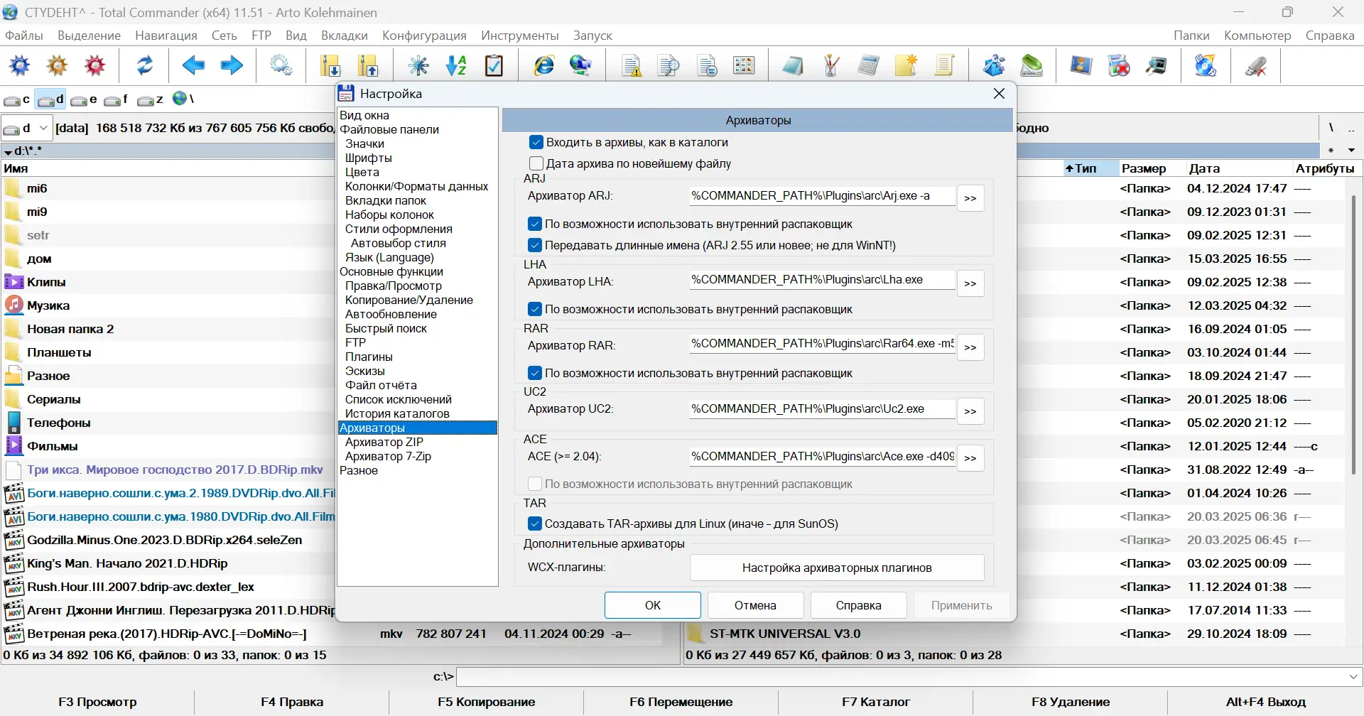 - Расширенные инструменты для работы с архивами, включая создание и распаковку ZIP-файлов более 2GB и работу с RAR до версии 7.10.