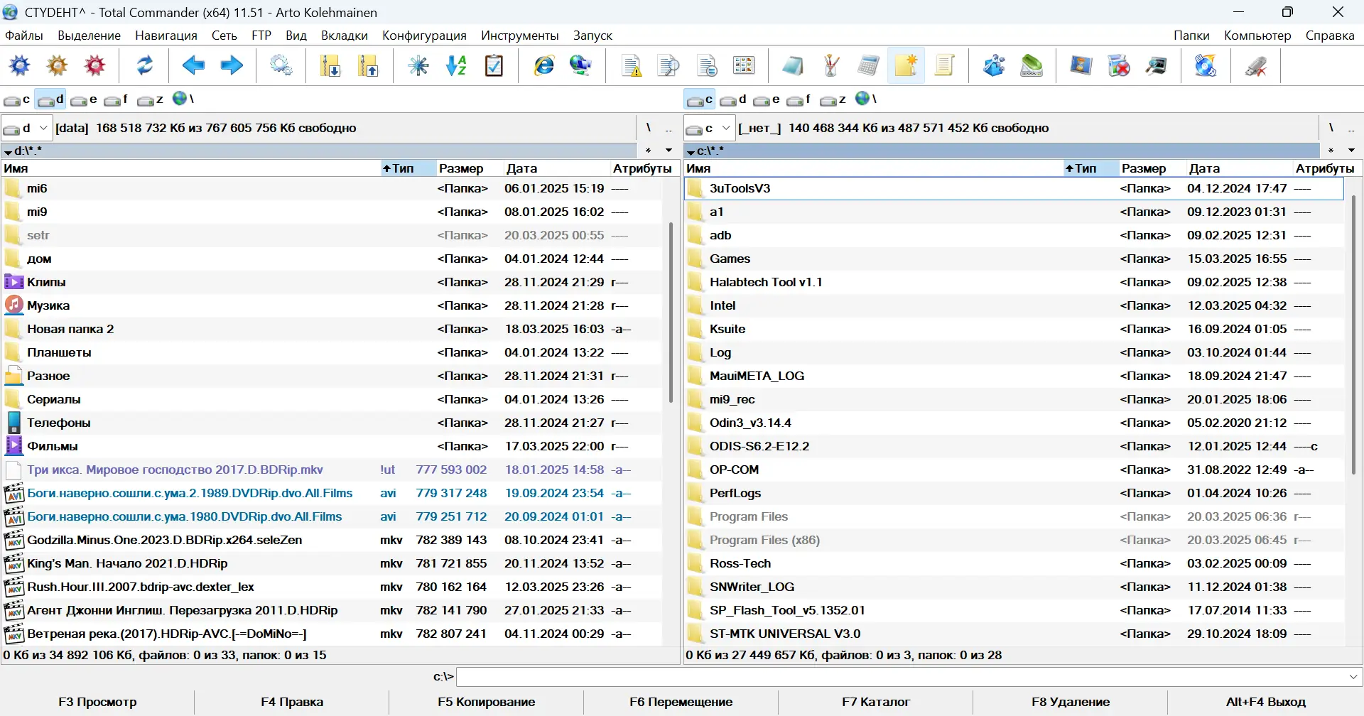 - Двухпанельный интерфейс с расширенными настройками для удобной навигации и управления файлами и папками.