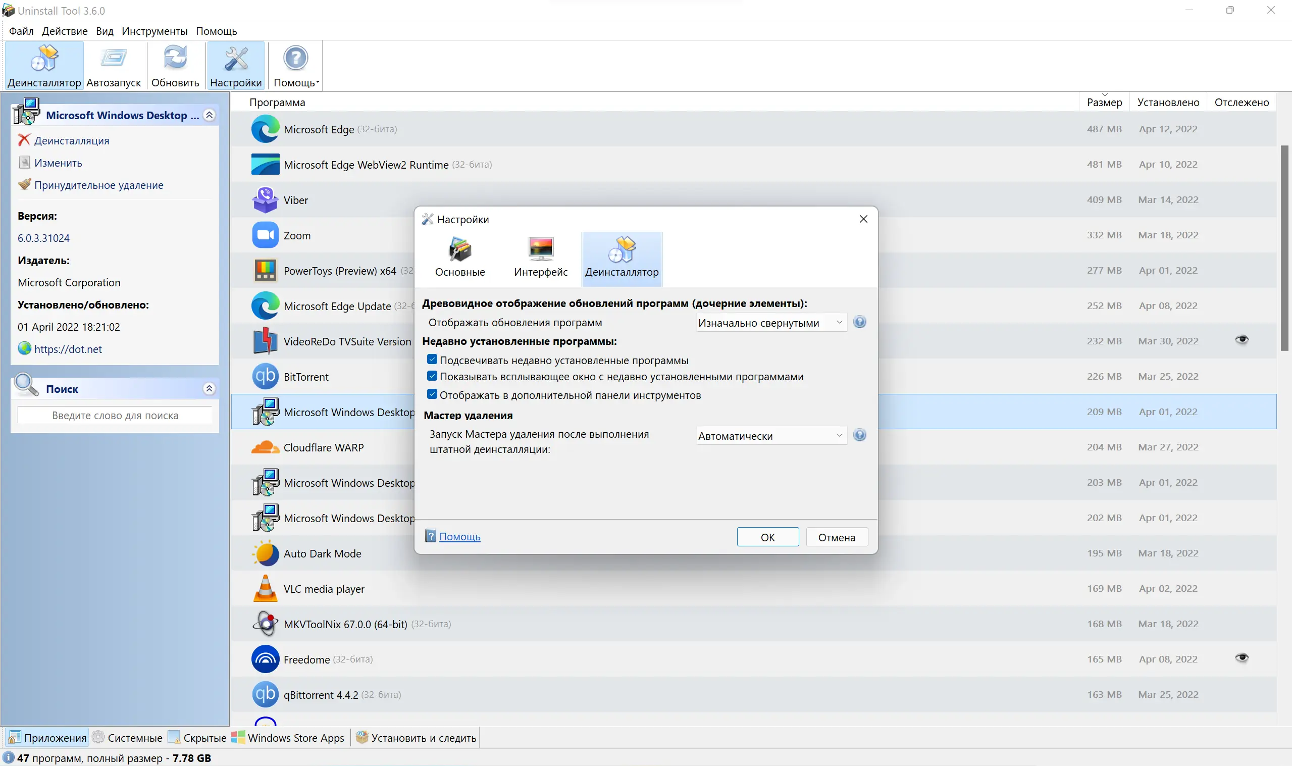 - Удаление программ в 3 раза быстрее стандартных средств.