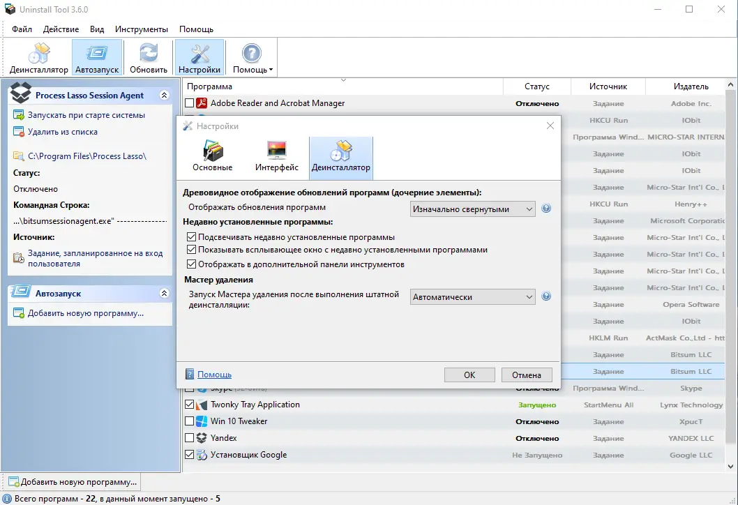 - Удаление процессов и принудительное завершение программ перед удалением остатков.