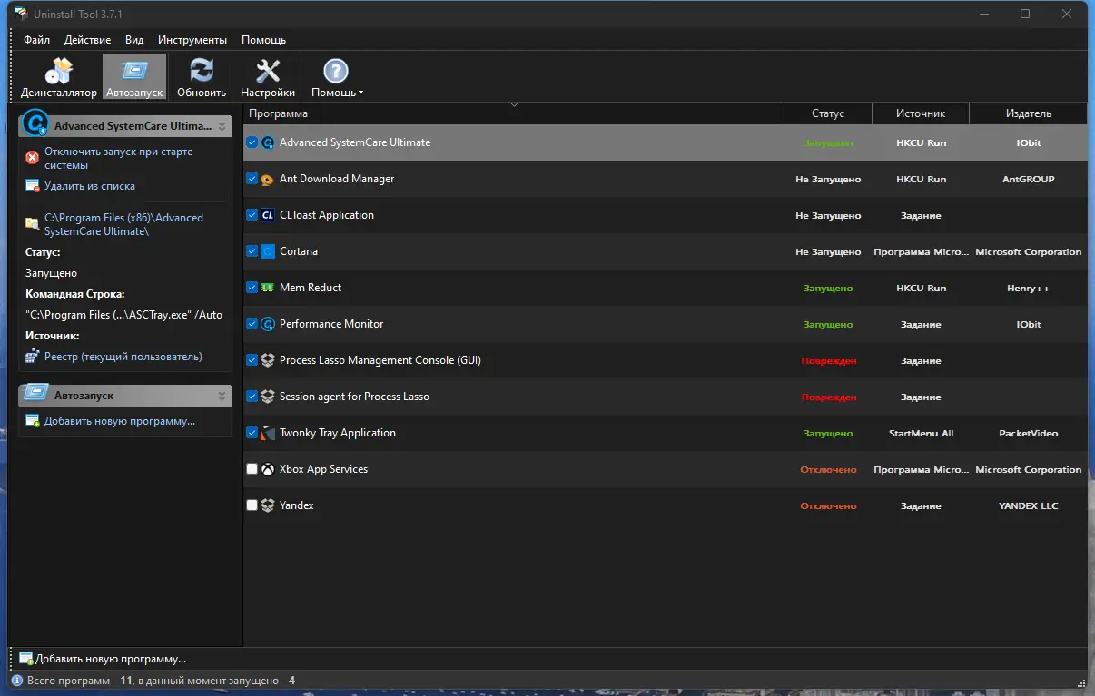- Добавление/удаление программ из автозагрузки для ускорения загрузки Windows