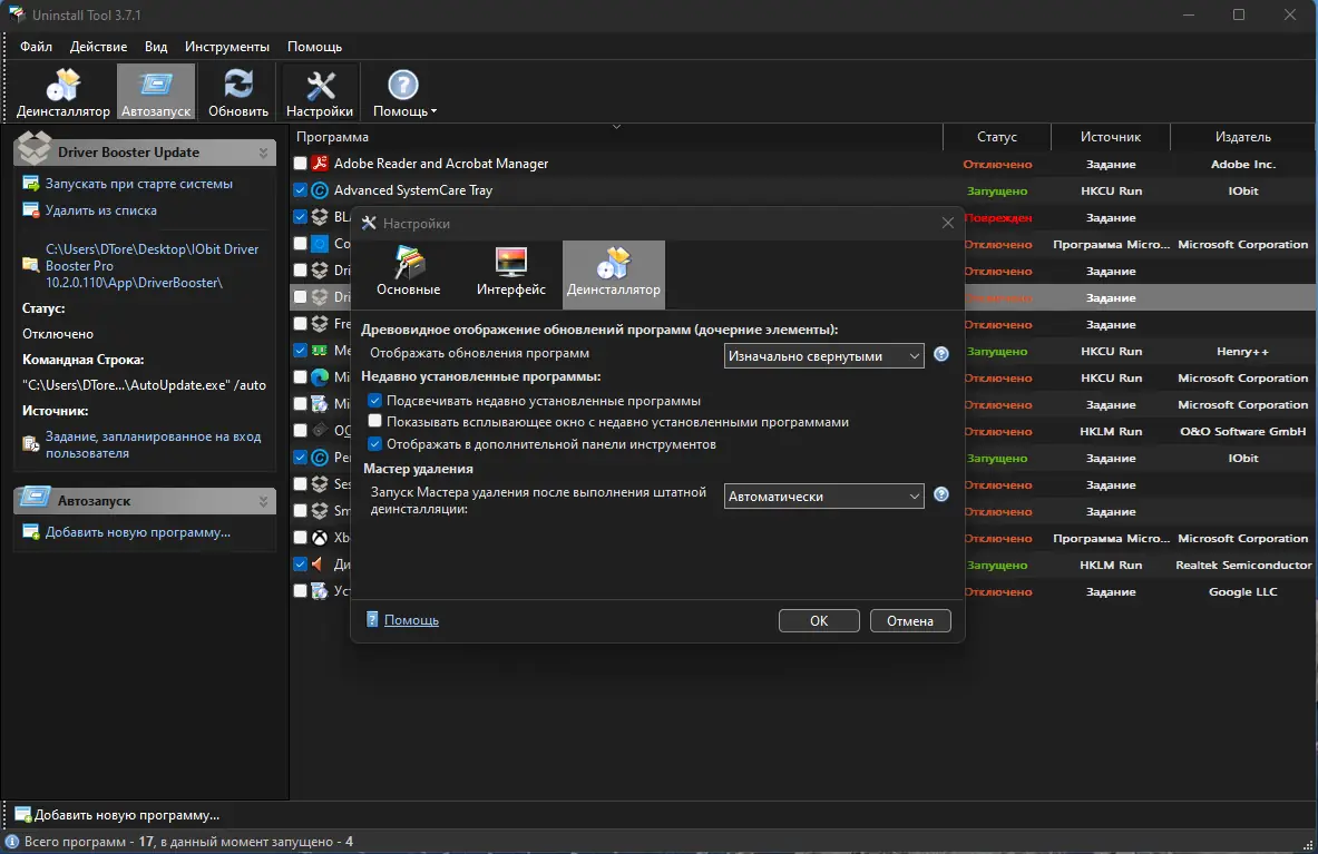 - Эффективное удаление программ и остатков в реестре и на диске.