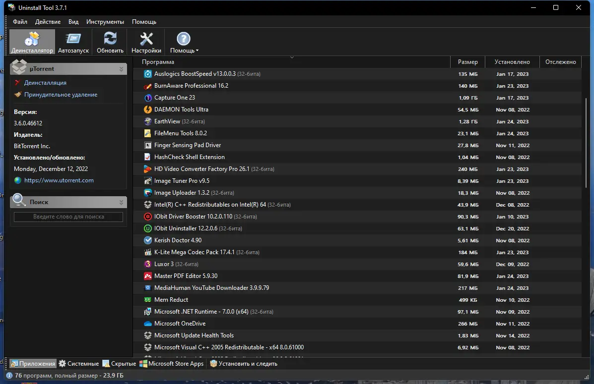 Благодаря интуитивно понятному интерфейсу и множеству функций, Uninstall Tool позволяет пользователю контролировать весь процесс удаления и отслеживать изменения. Эта программа подходит как для стандартных пользователей, так и для профессиональных IT-специалистов, которые хотят быстро и безопасно управлять программным обеспечением своего компьютера под управлением Windows 7, 8/8.1, 10 и 11 на архитектурах x32 и x64 Бит.