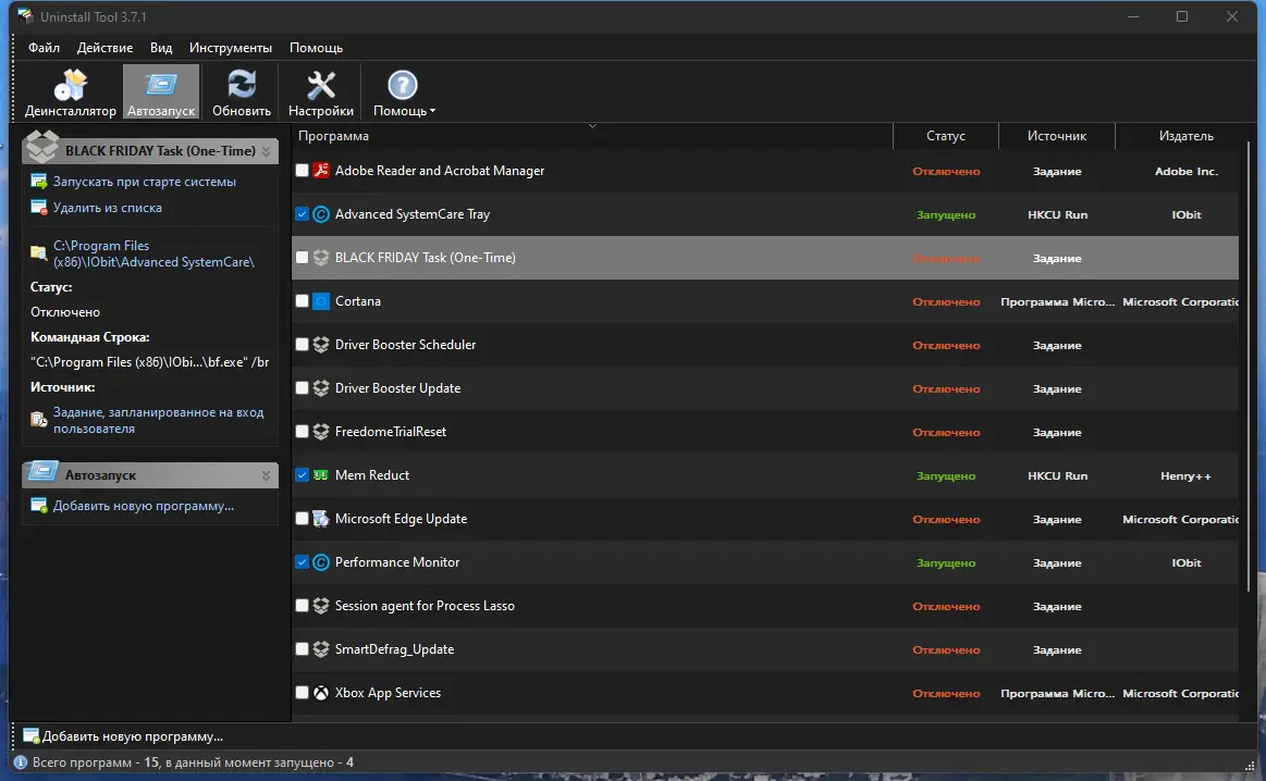 - Пакетное удаление нескольких программ одновременно, а также управление программами автозагрузки.