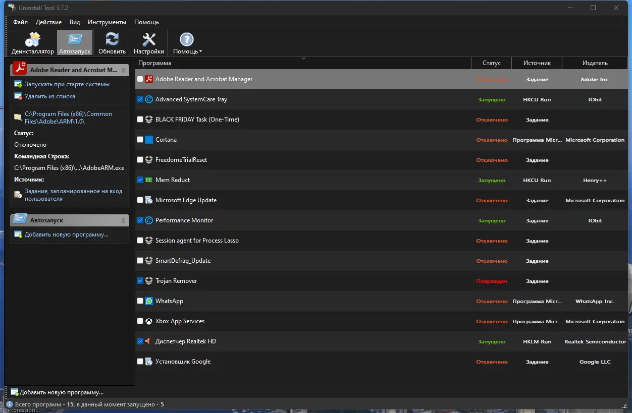 Uninstall Tool — это безопасная и удобная программа, предназначенная для полного удаления ненужных приложений и их остатков. В отличие от штатных средств Windows, она показывает скрытое установленное ПО, сортирует список по фильтрам и может экспортировать информацию о системе в HTML-формат. Благодаря встроенному мотору удаляет некорректно установленные или полностью удаленные программы, а также позволяет управлять программами автозагрузки и отслеживать процесс установки в реальном времени.