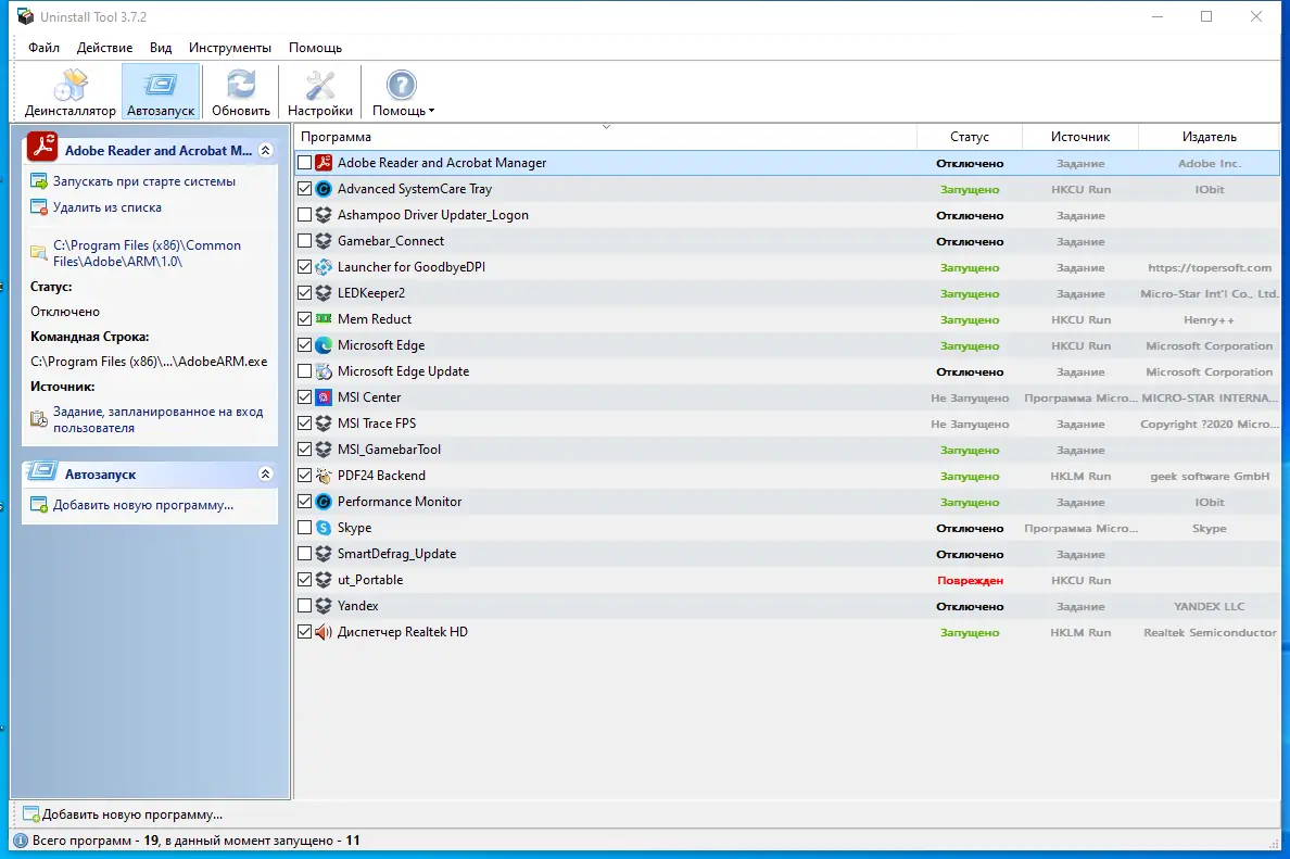 - Управление программами автозагрузки: включение, отключение, добавление и удаление элементов для ускорения запуска Windows.