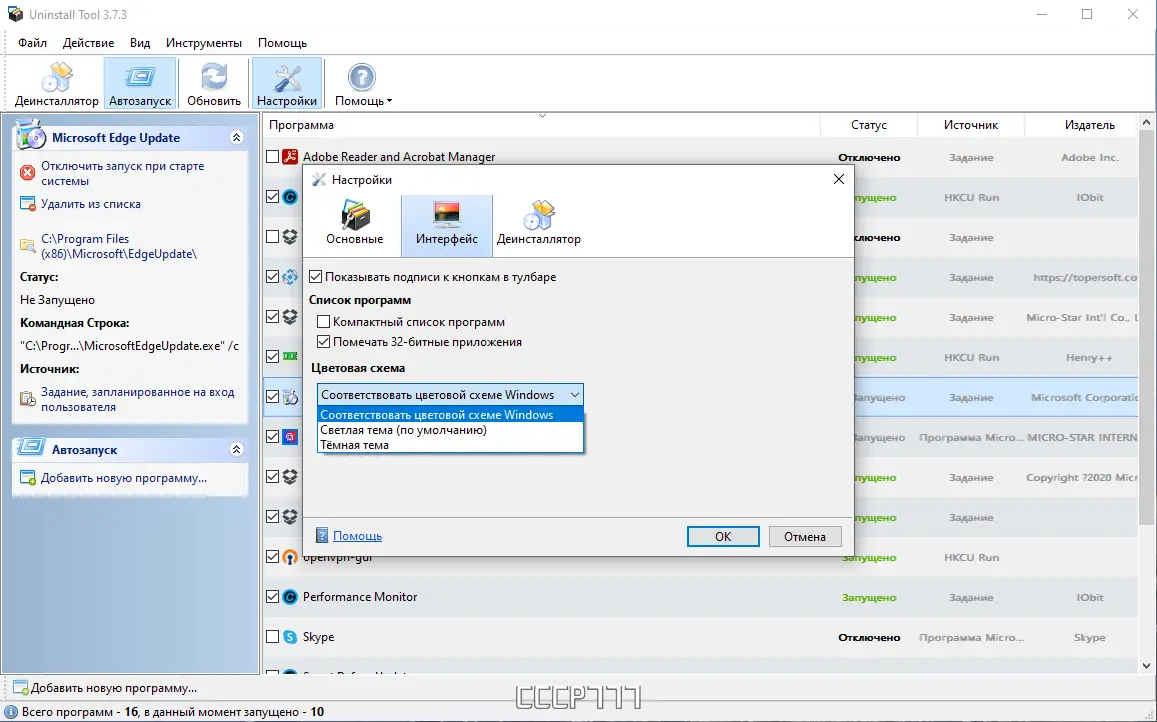 - Интуитивно понятный интерфейс и possibilité экспортировать список программ в HTML