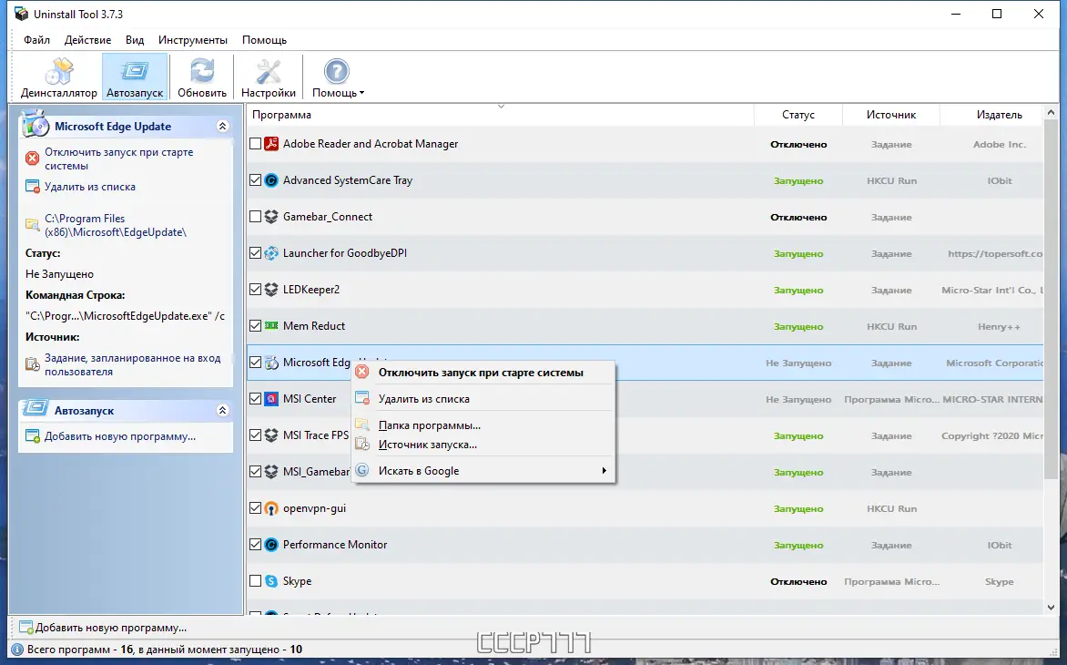 - Добавление, удаление и управление программами автозагрузки