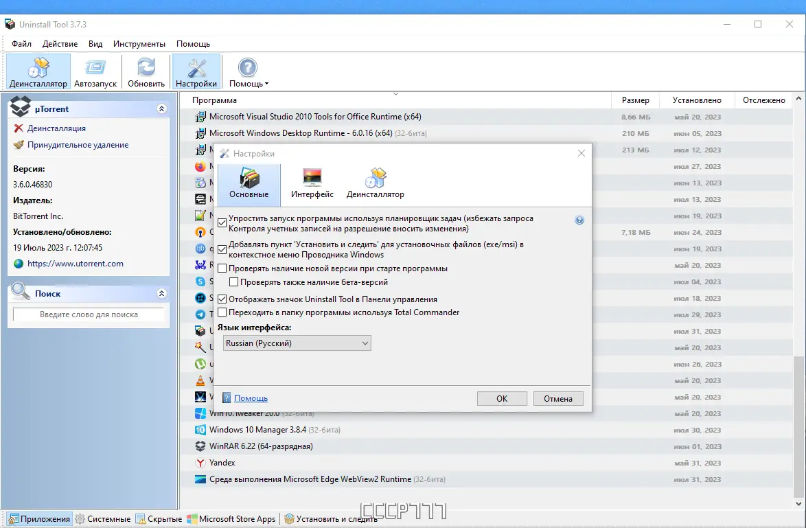 Uninstall Tool представляет собой надежную утилиту для удаления программ на Windows 7, 8/8.1, 10 и 11. как 32 и 64-битные версии. Благодаря широкому набору функций, он показывает скрытые установленные программы, сортирует список по выбранным фильтрам, удаляет некорректно установленные приложения, а также экспортирует список установленных программ в HTML-формат. В дополнение, программа умеет мониторить процессы установки новых приложений, управлять автозапусками и выполнять принудительное удаление даже самых сложных объектов, оставшихся после стандартных методов удаления.