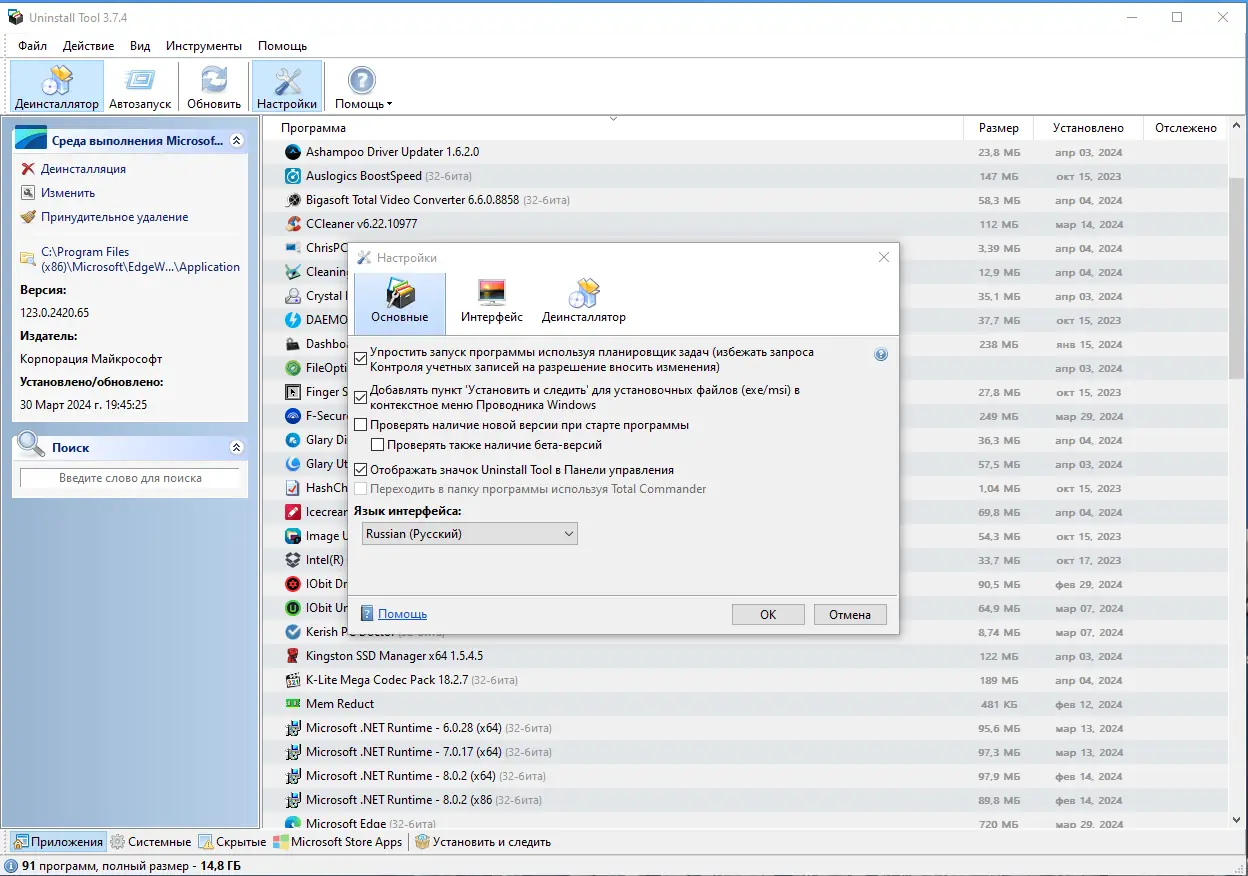 - Добавление и удаление приложений из автозагрузки, управление их параметрами