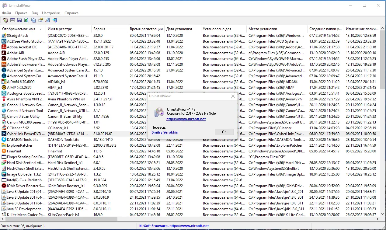 - Для смены языка удалите файл UninstallView_lng.ini из папки с программой, если необходим английский интерфейс.