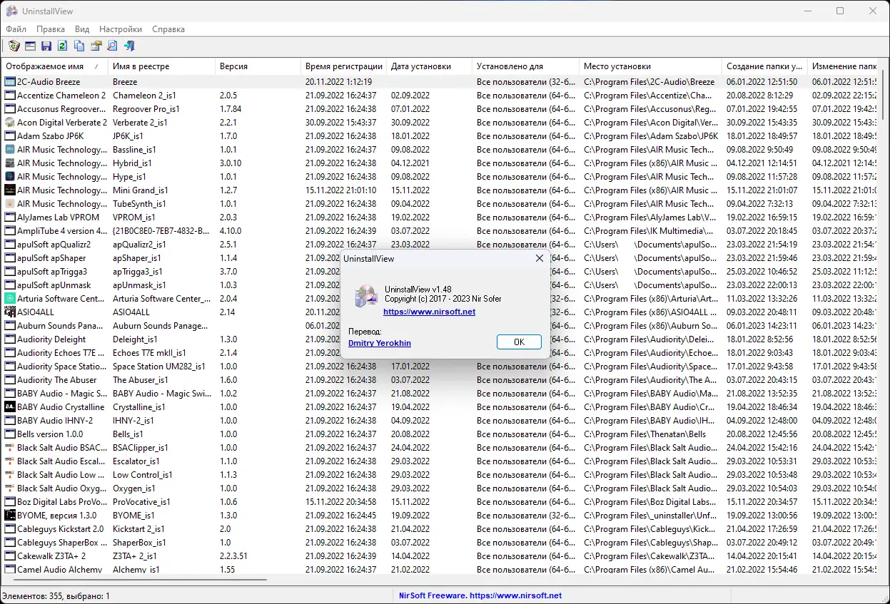 - При необходимости, перейти на английский язык, удалив файл UninstallView_lng.ini.