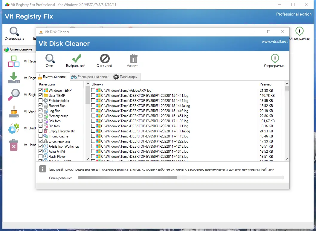 Vit Registry Fix Professional edition — это мощный инструмент для очистки реестра от ошибок и устаревших данных, обеспечивающий автоматический и ручной режимы сканирования. Программа обнаруживает более 50 типов ошибок в реестре, помогает удалять неправильные ярлыки, управлять автозагрузкой и создавать резервные копии перед внесением изменений. Дополнительно, она позволяет удалять списки истории программ и недавно открытых файлов, что способствует увеличению конфиденциальности и скорости работы системы. В комплект входит четыре приложения, каждое из которых предназначено для конкретных задач — оптимизации, очистки временных файлов, управления автозагрузкой и удаления программ.