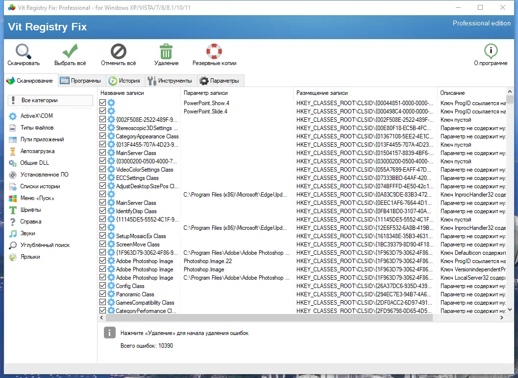 - Мощное автоматическое обнаружение и исправление ошибок реестра