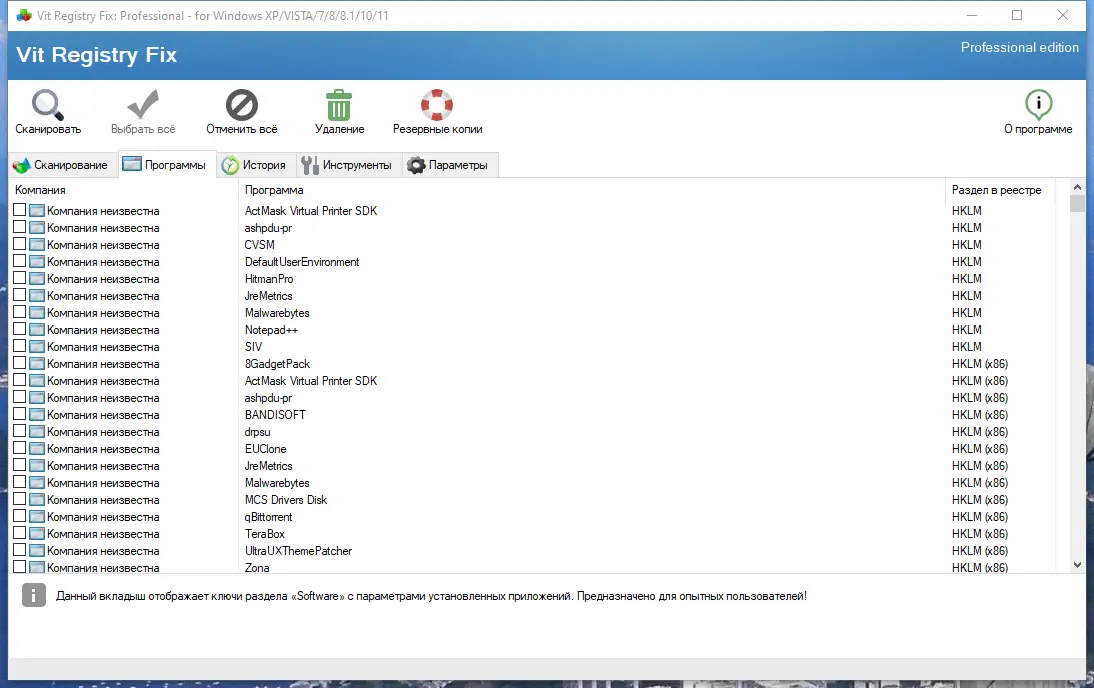 Vit Registry Fix Pro — мощная программа для очистки реестра от ошибок и устаревших данных. Обладает автоматическими средствами сканирования, способными находить более 50 вариантов ошибок в реестре, что помогает повысить производительность и стабильность операционной системы. Благодаря многофункциональности, программа также занимается удалением временных файлов, управлением автозагрузкой и удалением ненужных программ.