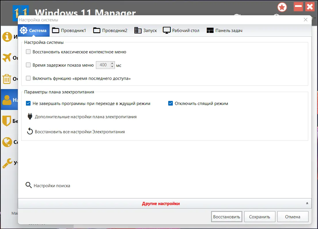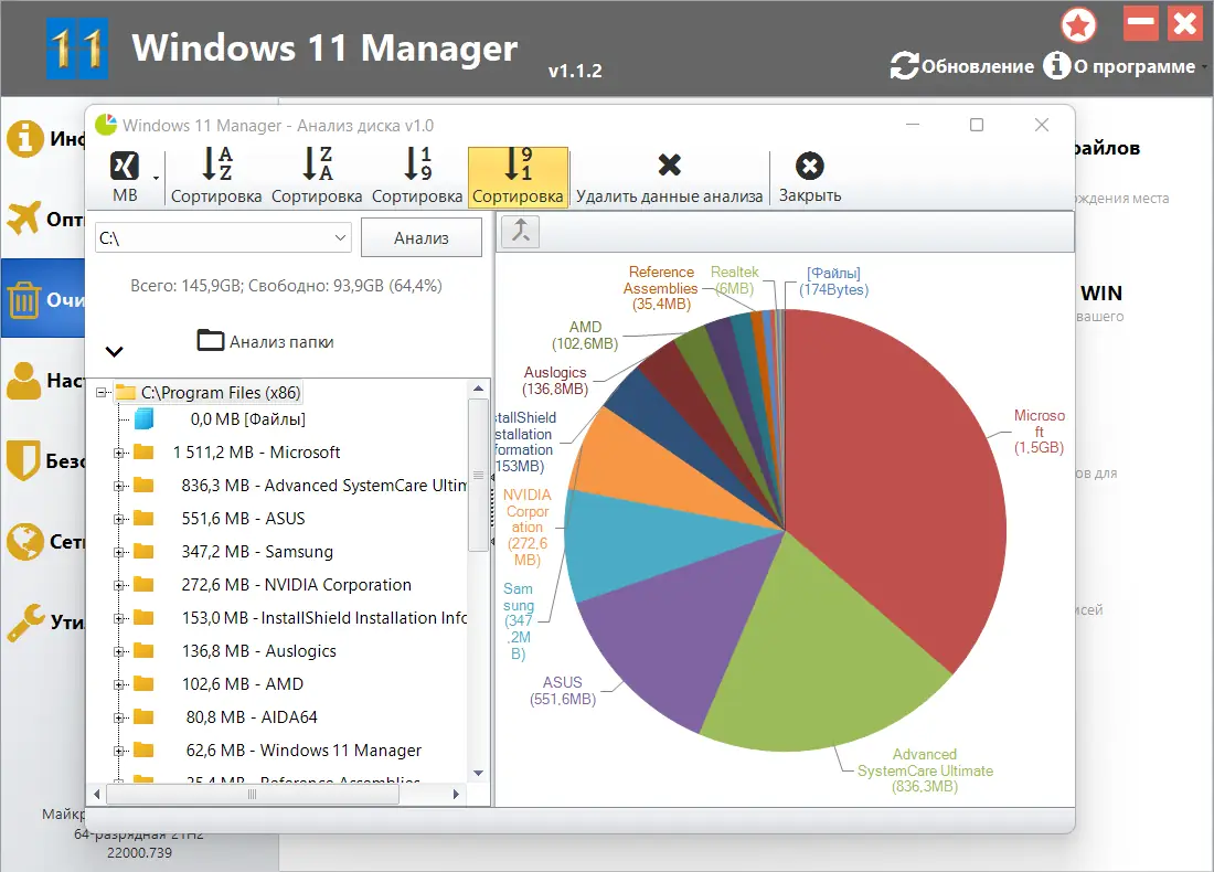 Windows 11 Manager включает в себя инструменты для анализа дискового пространства, управления системными службами, настройки сети, обеспечения безопасности и восстановления системы. Благодаря встроенным утилитам можно создавать точки восстановления, получать подробную информацию о системе и оборудовании, управлять автозагрузкой и редактировать реестр. Возможности программы позволяют повысить производительность и надежность системы, а также обеспечить ее безопасную работу.