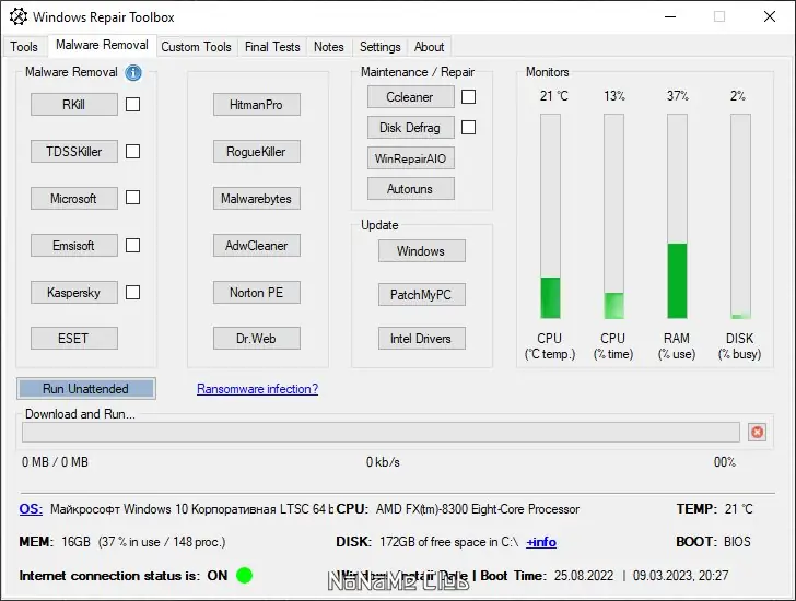 Этот инструмент подходит для систем Windows 7, 8/8.1, 10 и 11 на архитектуре x32/x64 Bit. Он отлично подходит как для профессиональных специалистов, так и для владельцев домашних PC, позволяя быстро и подробно проводить обслуживание системы без необходимости самостоятельной ручной установки и поиска необходимых программ.