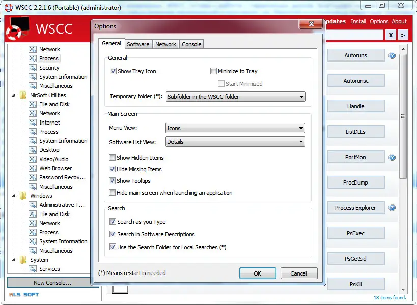 System Control Center представляет собой комплексный интерфейс, объединяющий программы двух авторитетных разработчиков, таких как Sysinternals Suite и NirLauncher. Он служит удобной и красивой альтернативой отдельным пакетам, позволяя выполнять широкое множество задач: от мониторинга системных ресурсов до запуска встроенных средств Windows. Такой набор программ легко носить с собой на USB или скачивать заново, что особенно удобно для IT-специалистов и продвинутых пользователей. В интерфейсе реализована возможность поиска, настройки вида (иконки или подробные описания), а также встроенная консоль для выполнения команд с параметрами. Все программы снабжены краткими характеристиками, иконками и справочными файлами, что обеспечивает легкий доступ к необходимым инструментам.