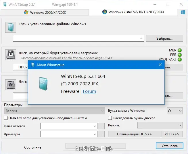 WinNTSetup – это мощный инструментарий для создания и настройки загрузочного модуля операционной системы Windows. Он служит альтернативным инсталлятором, позволяя устанавливать вторую ОС на внутренний или внешний диск, виртуальный жесткий диск, а также флешку. Программа подходит для различных версий Windows начиная с Windows 2000 и заканчивая Windows 11, поддерживая как 32-битные, так и 64-битные системы. Удобство портативной версии обеспечивает быстрый запуск без необходимости установки, а полностью русифицированный интерфейс делает работу максимально комфортной.