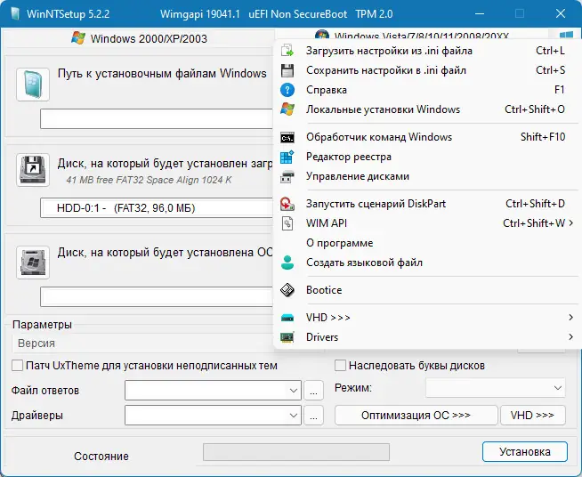 WinNTSetup предоставляет расширенные возможности по установке Windows с минимальными усилиями, что делает её незаменимым инструментом для системных администраторов и опытных пользователей. Поддержка различных версий Windows, гибкая настройка и возможность работы на минимальных системах позволяют использовать программу в самых разнообразных сценариях.