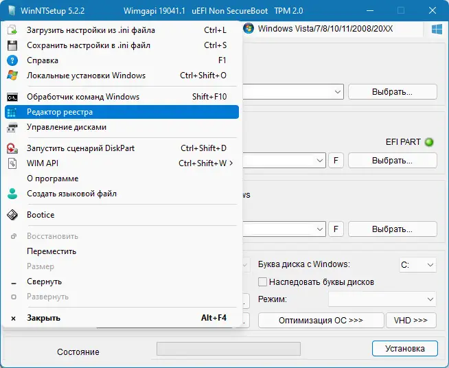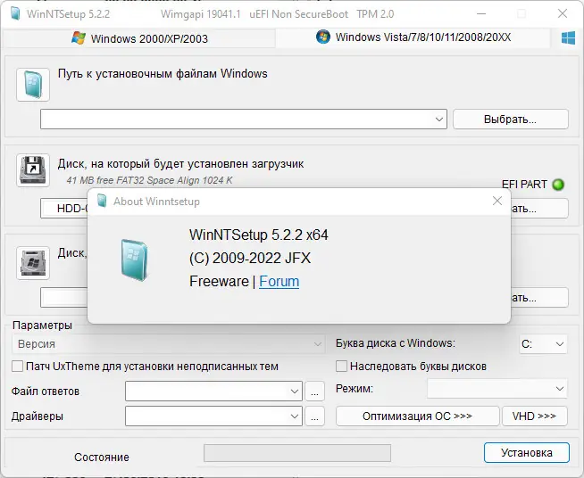 WinNTSetup — это мощный инструмент для быстрый и удобной установки или переустановки операционной системы Windows различных версий, включая Windows 7, 8/8.1, 10 и 11. Предлагая функции, недоступные стандартным установочным средствам, программа позволяет создавать загрузочные модули и выполнять установку с минимальными затратами времени и усилий.