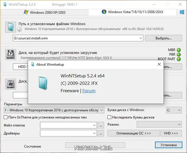 WinNTSetup — универсальный инструмент для подготовки и установки операционных систем Windows на различных носителях и разделах. Он позволяет создавать загрузочные модули, а также устанавливать Windows 7, 8/8.1, 10 и 11 через удобный интерфейс, поддерживая работу с файлами WIM, ESD и WimBoot.