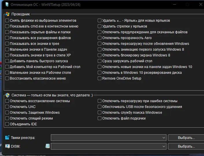 WinNTSetup — это мощная программа для создания и настройки загрузочного модуля операционной системы Windows, предназначенная для облегчения процесса установки и настройки различных версий Windows. Утилита подходит для опытных пользователей и системных администраторов, желающих быстро и удобно подготовить установочные образы и подготовить системы к запуску без необходимости установки.
