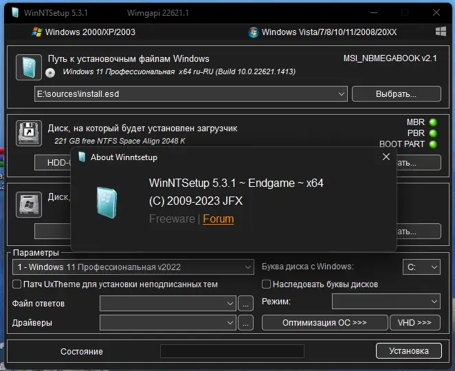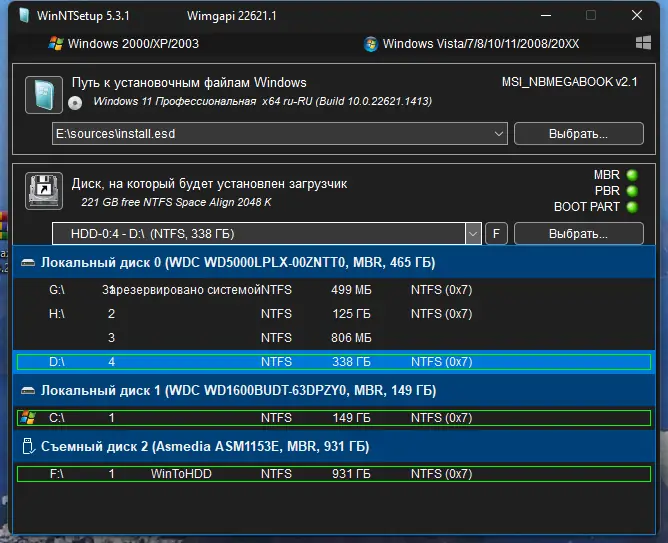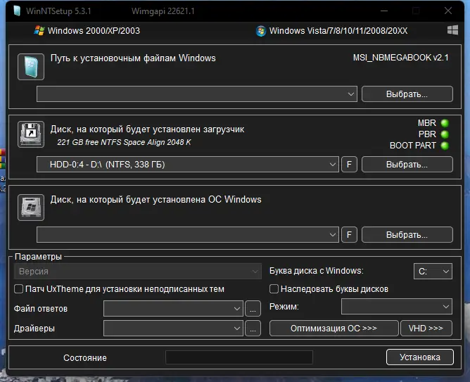 Важно отметить, что при использовании WinNTSetup можно установить Windows 10, 11, а также более старые версии, такие как Windows 7, 8/8.1, на любые подходящие разделы диска, сделав их активными и отформатировав по необходимости. Это удобное решение для тех, кто хочет быстро как установить Windows, так и настроить её для работы в различных условиях.