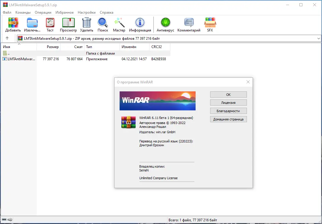 WinRAR — один из самых известных архиваторов, поддерживающий архивацию в формате RAR и другие популярные форматы такие как ZIP, CAB, ARJ, LZH, TAR, GZ, BZIP, JAR, UUE, GZIP, BZIP2 и 7-Zip. Программа обладает рядом полезных функций: шифрование архивов, создание непрерывных (solid) архивов с повышенной степенью сжатия, эффективное сжатие мультимедийных файлов, поддержку многотомных архивов и возможность восстановления поврежденных архивов. Благодаря этому, WinRAR является незаменимым инструментом для профессионалов и обычных пользователей, которым необходим надежный и многофункциональный архиватор.