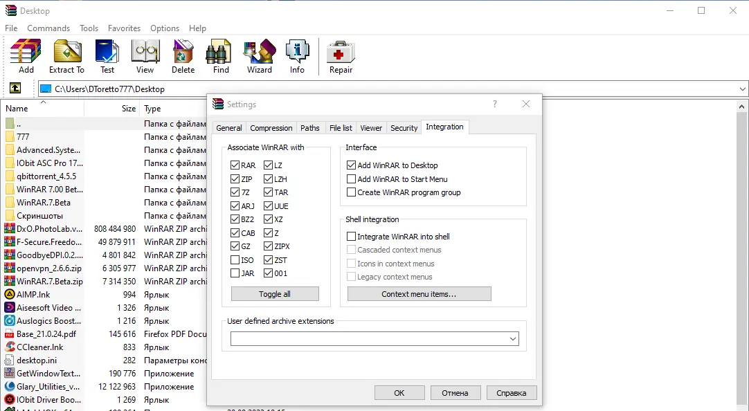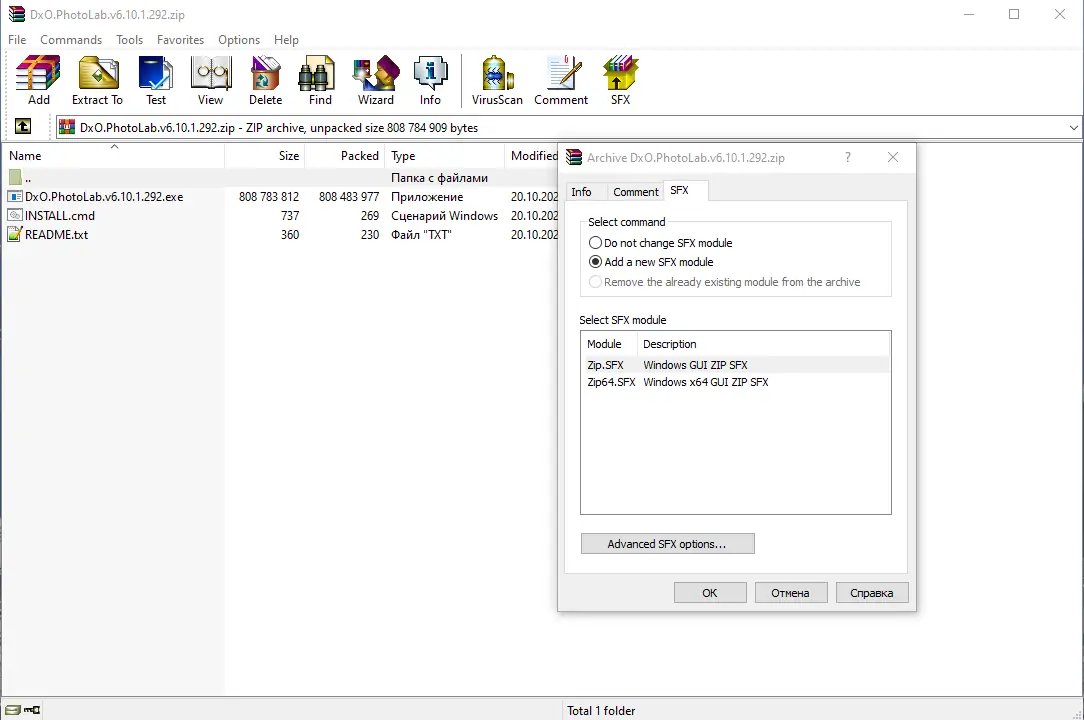 - Создание многотомных и самораспаковывающихся архивов (SFX)