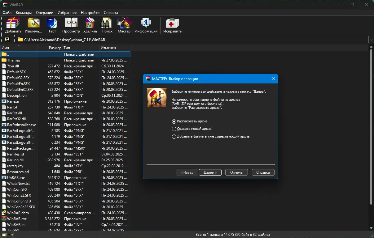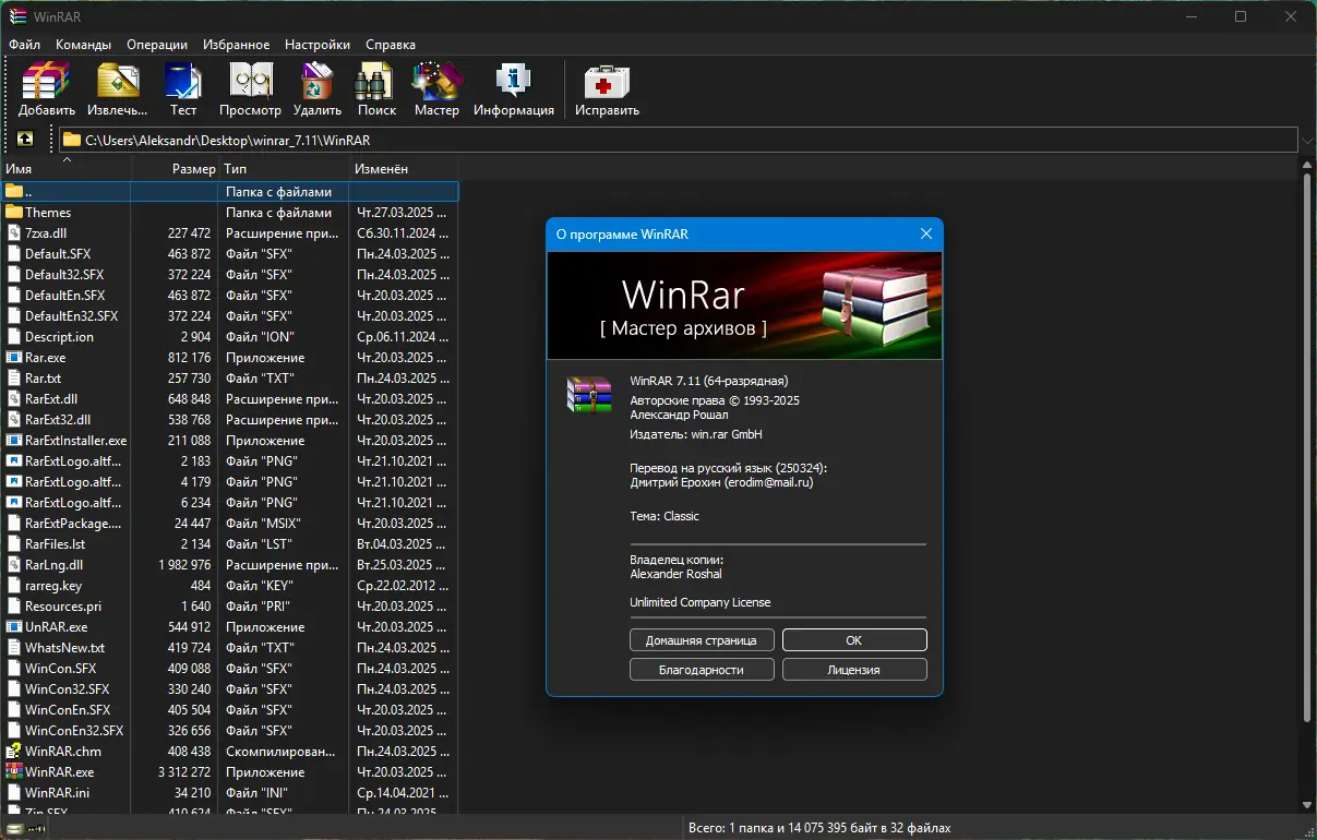 WinRAR — это мощное приложение для управления архивами, которое поддерживает работу с широко распространенными форматами RAR, ZIP, а также с CAB, ARJ, LZH, TAR, GZ, BZIP, JAR, UUE, GZIP, BZIP2 и 7-Zip. Программа обладает множеством полезных функций, включая шифрование, поддержку непрерывных (solid) архивов, алгоритмы для сжатия мультимедийных файлов, создание многотомных архивов и более. Благодаря универсальности и богатому функционалу, WinRAR подходит как для профессионалов, так и для обычных пользователей, желающих максимально эффективно управлять файлами и снижать их объемы.
