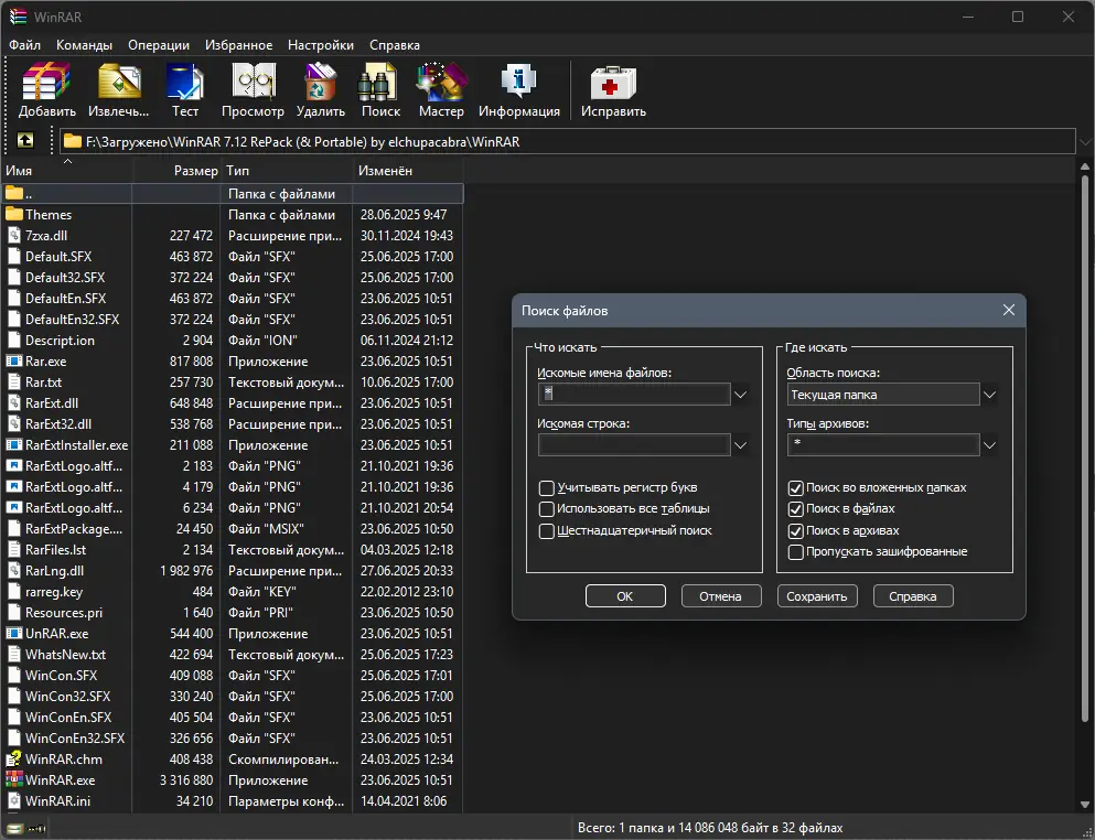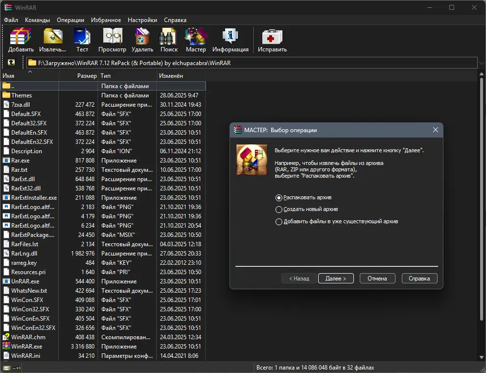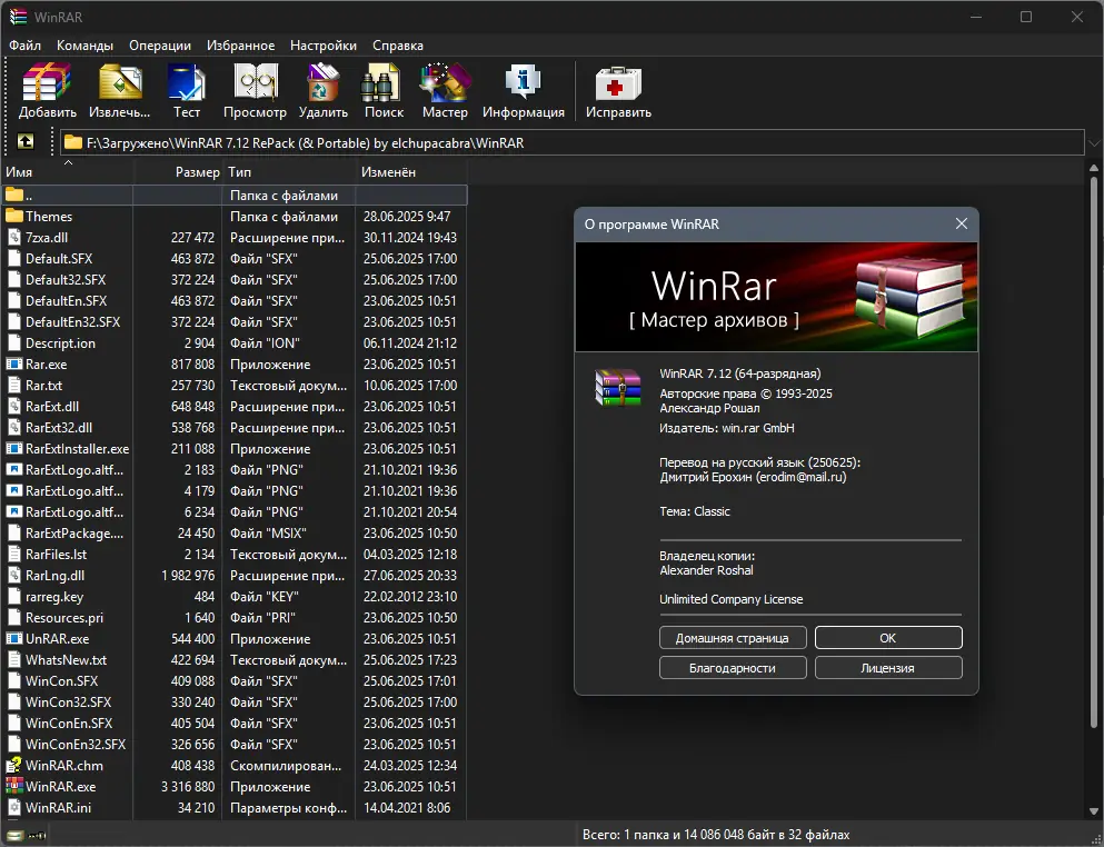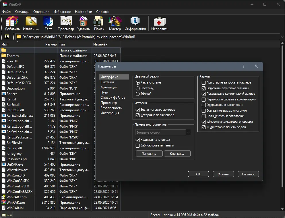 WinRAR — популярный архиватор, поддерживающий создание и распаковку множества форматов архивов, включая RAR и ZIP. Он широко используется для эффективного сжатия файлов и обеспечения их защиты с помощью шифрования. Особенно ценится возможностью работать с мультимедийными файлами и многотомными архивами.