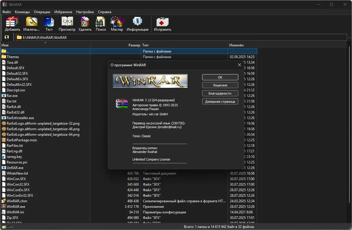 WinRAR — это универсальный инструмент, позволяющий создавать, открывать и управлять архивами в различных форматах, таких как ZIP, CAB, ARJ, LZH, TAR, GZ, BZIP, JAR, UUE, GZIP, BZIP2 и 7-Zip. Программа отличается высокой эффективностью сжатия благодаря оригинальному алгоритму, а также поддержкой многих дополнительных возможностей: шифрование, создание многотомных архивов, восстановление поврежденных архивов и многое другое. При установке предусмотрены меню для выбора языка, включая русскую версию, а также возможность установки портативного варианта без регистрации и ключа.