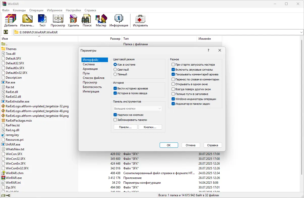 WinRAR совместим с современными операционными системами Windows 7, 8/8.1, 10 и 11, поддерживая как x32, так и x64 битные версии. Для комфортной работы рекомендуется следующий уровень системных ресурсов: