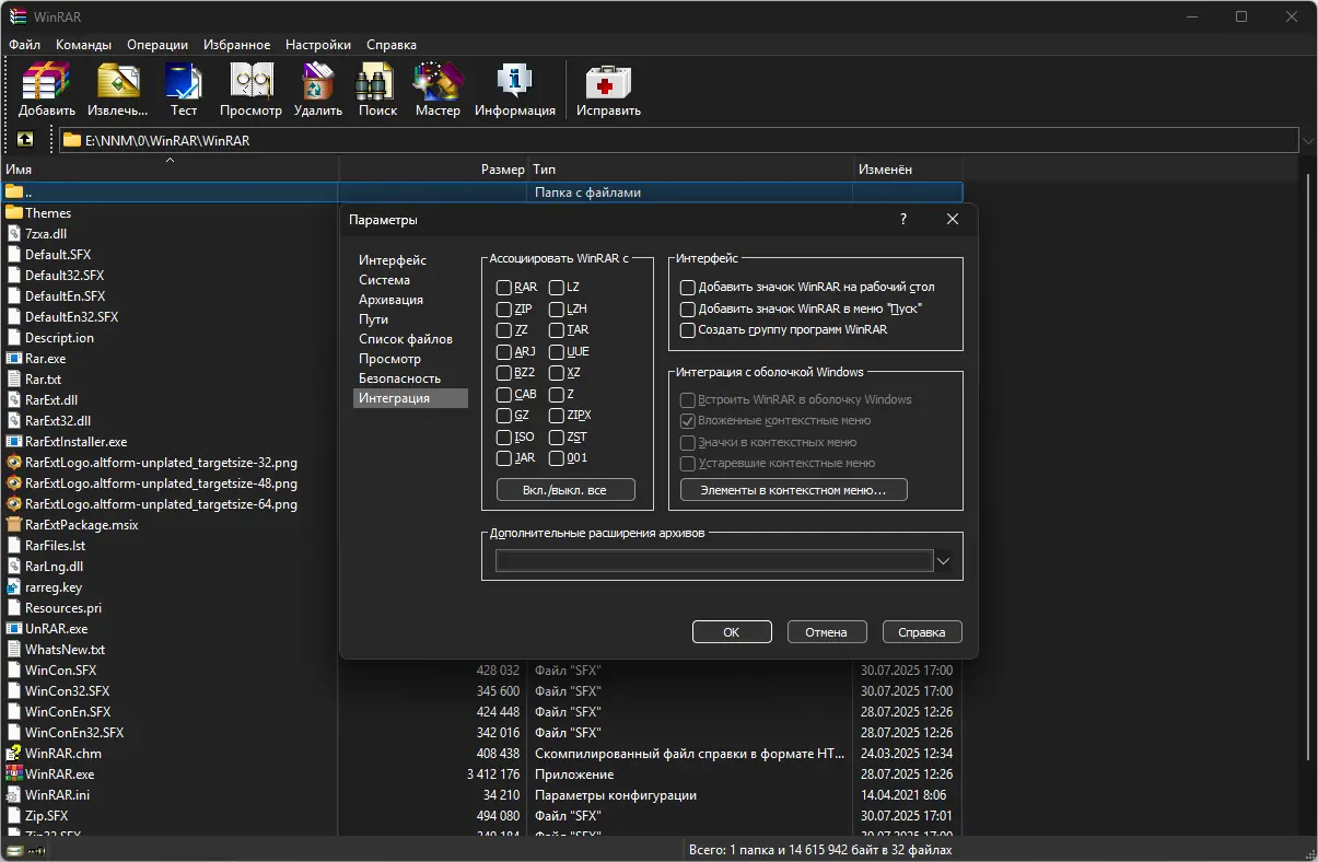 - Создание самораспаковывающихся (SFX) архивов и многотомных коллекций.
