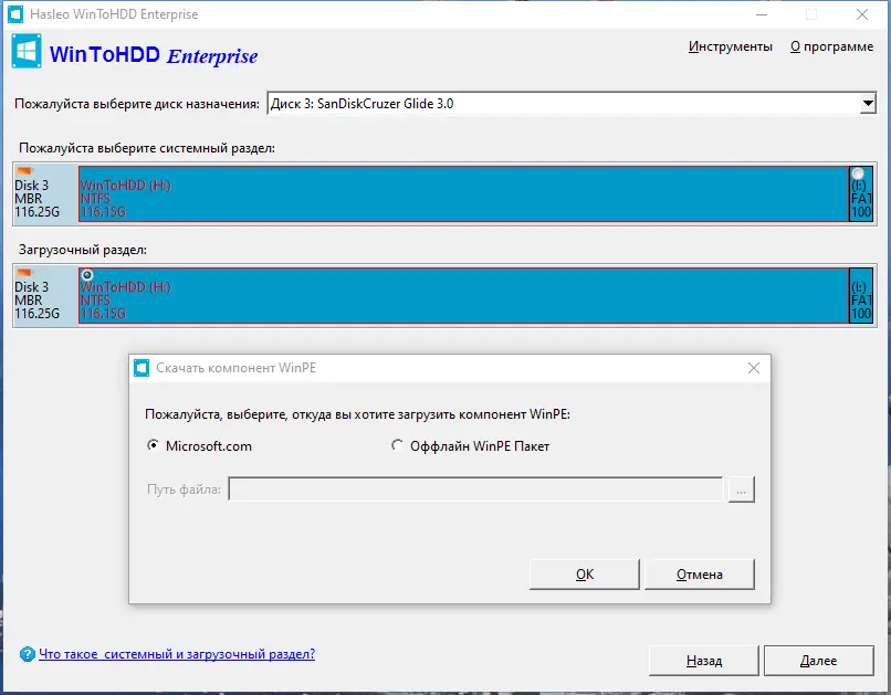 - Установка Windows с ISO файла или CD/DVD без необходимости использования дополнительных носителей