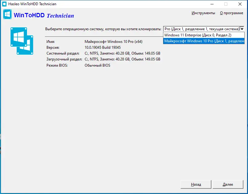 - Клонирование системного раздела илиEntire диска на другой накопитель