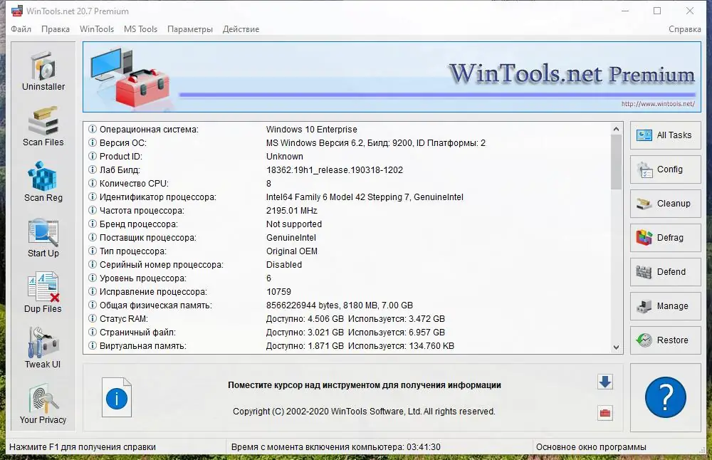 WinTools.net – это комплексный набор инструментов, предназначенных для оптимизации и обслуживания операционной системы Windows. В составе программы представлены функции для полного устранения нежелательных программ и «мертвых» ссылок в реестре, а также инструменты для контроля процессов, настройки системы, управления интернет-соединениями и интерфейсом. Также доступны утилиты для безопасного хранения конфиденциальной информации, что повышает безопасность использования компьютера.