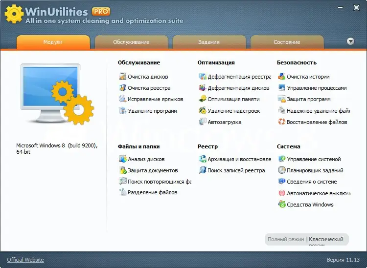 WinUtilities — это системный набор, предназначенный для оптимизации, очистки и защиты вашего компьютера. Он обладает привлекательным и интуитивно понятным интерфейсом, организованным по категориям для быстрого доступа к необходимым инструментам. В комплект входят такие функции, как очистка мусорных файлов, очистка реестра, оптимизация памяти, управление автозапуском, удаление следов активности в интернете, разрезание и соединение файлов, защищенное уничтожение конфиденциальных данных и многое другое. Благодаря широкому набору утилит, данное решение помогает поддерживать работу системы в оптимальном состоянии, одновременно обеспечивая конфиденциальность и безопасность.