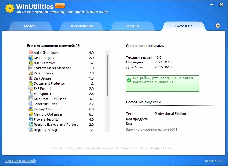 WinUtilities — многофункциональный системный набор для оптимизации и обслуживания вашего компьютера. Этот инструмент объединяет более 20 различных утилит, позволяющих повысить производительность системы, устранить ненужные файлы и обеспечивать безопасность данных.