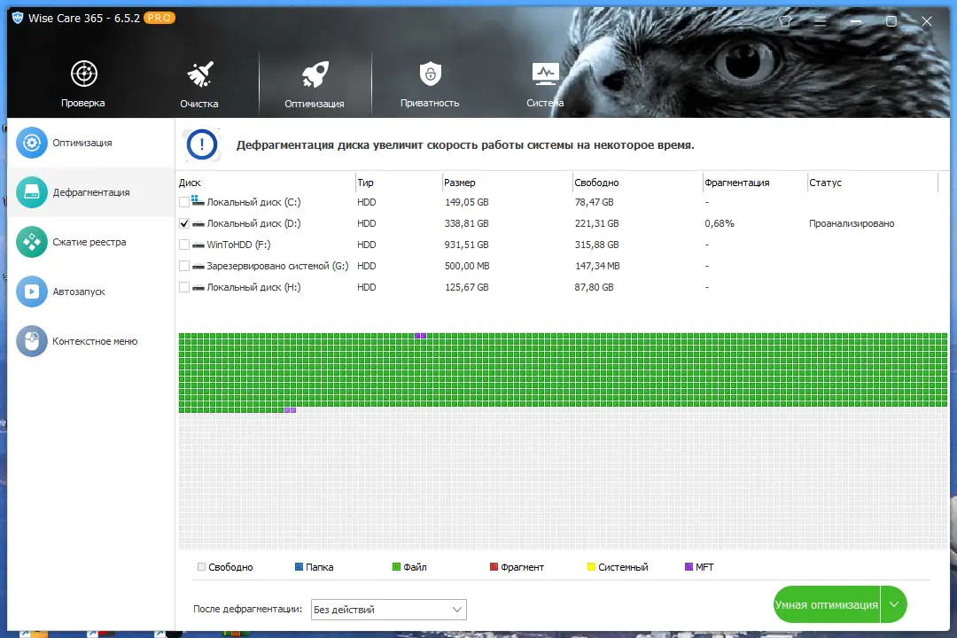 Wise Care 365 – это программный пакет, предназначенный для улучшения работы компьютера под управлением Windows разной версии. Он способен автоматически очищать системный реестр, освобождать место на диске, дефрагментировать дисковые и реестровые файлы, восстанавливать удалённые данные, а также блокировать нежелательные приложения и защищать важные файлы с помощью шифрования. Дополнительные функции включают оптимизацию оперативной памяти, управление автозапуском и работу по расписанию, что делает его универсальным инструментом для эффективного обслуживания системы. Возможность работы «в один клик» позволяет пользователю быстро привести систему в порядок, а наличие встроенного планировщика автоматизирует процессы технического обслуживания.