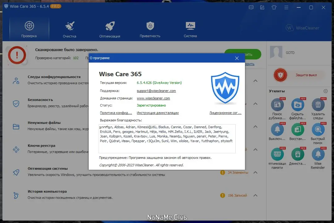 Wise Care 365 – это мощный программный пакет, предназначенный для скоростной и безопасной очистки системы, настройки и повышения производительности компьютера. Он способен быстро произвести очистку системного реестра, освободить место на жестком диске, дефрагментировать файлы, восстанавливать удалённые данные, а также блокировать нежелательные приложения с помощью паролей. Помимо этого, программа умеет оптимизировать работу оперативной памяти, управлять автозапуском программ и выполнять множество других задач, обеспечивая стабильную работу системы в автоматическом режиме или «в один клик». Имеется функция шифрования и скрытия важных файлов и папок, а также возможность планировать регулярные автоматические действия, что делает этот инструмент незаменимым для пользователей, желающих сохранять приватность и поддерживать свой ПК в оптимальном состоянии.