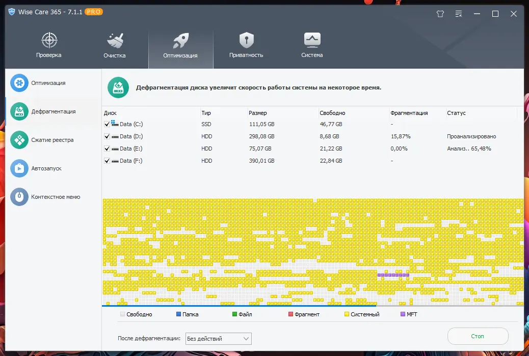 - Широкий набор инструментов для чистки, дефрагментации и оптимизации.